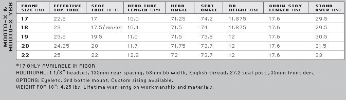 Frame Price: Mooto-X $2,950, YBB $3,200